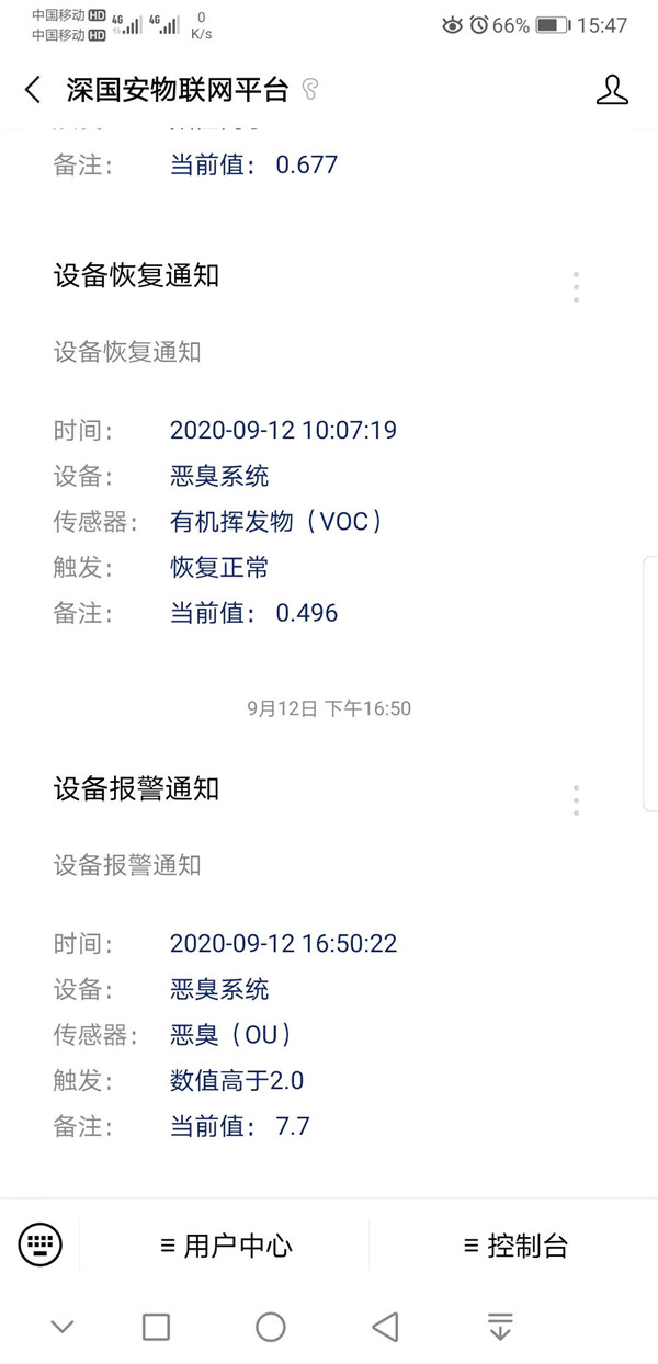 深國(guó)安物聯(lián)網(wǎng)平臺(tái)手機(jī)端實(shí)時(shí)查看,可以綁定微信,實(shí)時(shí)數(shù)據(jù)監(jiān)控;超標(biāo)后自動(dòng)微信推送!平臺(tái)端,手機(jī)端,微信端三網(wǎng)融合打通!