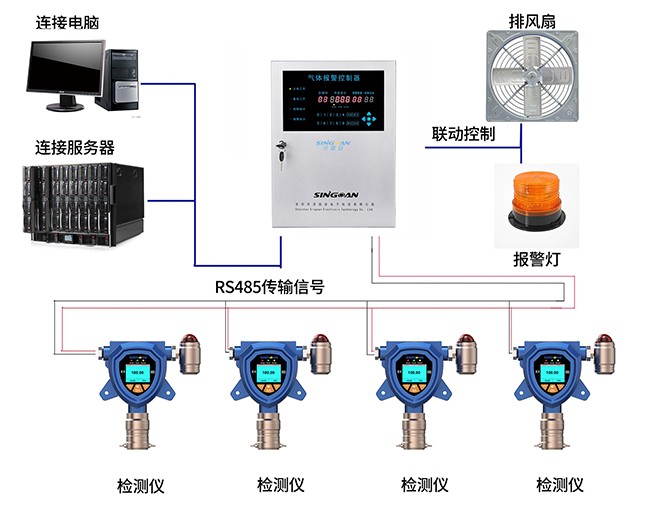 5.現(xiàn)場(chǎng)3級(jí)聲光報(bào)警,繼電器輸出(外接排風(fēng)等外部設(shè)備)