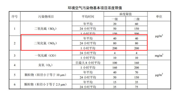 大氣指標(biāo)中二氧化氮標(biāo)準(zhǔn)限值為:年平均濃度限值為40μg/m3,根據(jù)我國環(huán)境空氣質(zhì)量標(biāo)準(zhǔn)GB 3095-2012中規(guī)定,環(huán)境空氣中的二氧化氮NO2的年平均濃度限值為40μg/m3、24小時...
